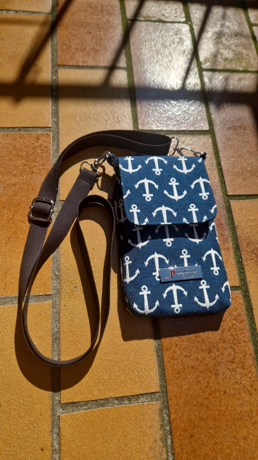 Handytasche zum Umhängen Canvas Anker Natur und Jeansblau