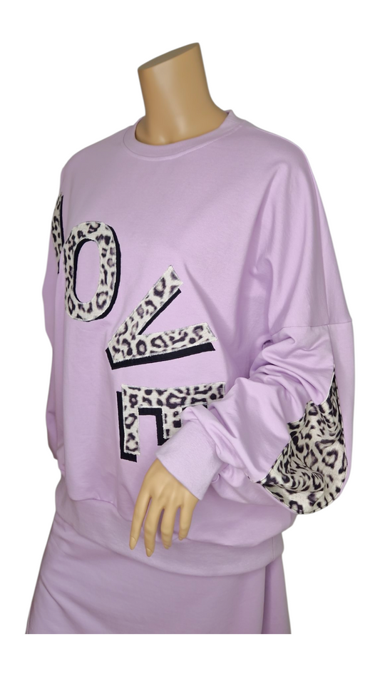 Lavendel Sweatshirt Sommersweat LOVE Leoparden