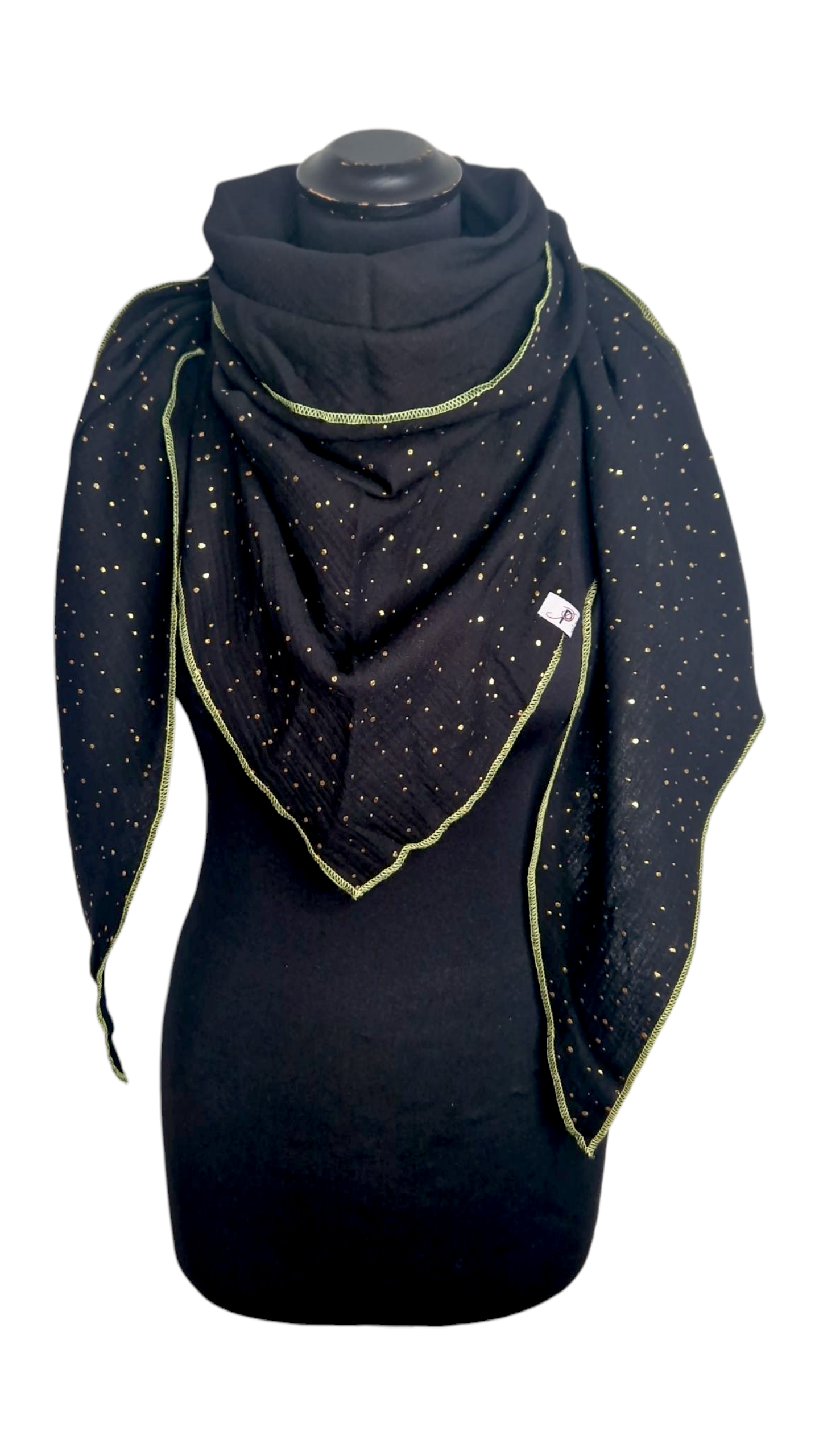Gold Punkte Musselintuch mit Neonrand-Gelb, Schwarz