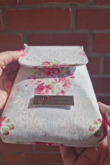 Handytasche zum Umhängen Canvas Blumen Hellblau